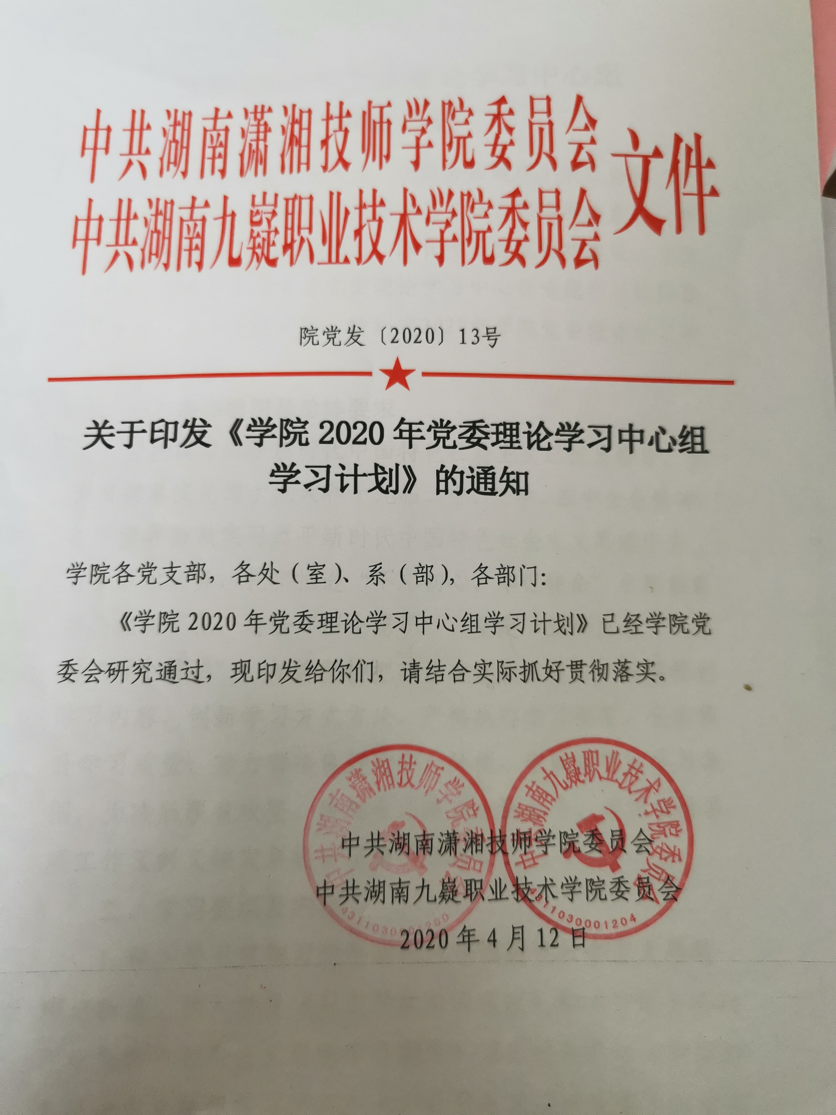 附件:关于印发《学院2020年党委理论学习中心组学习计划》的通知