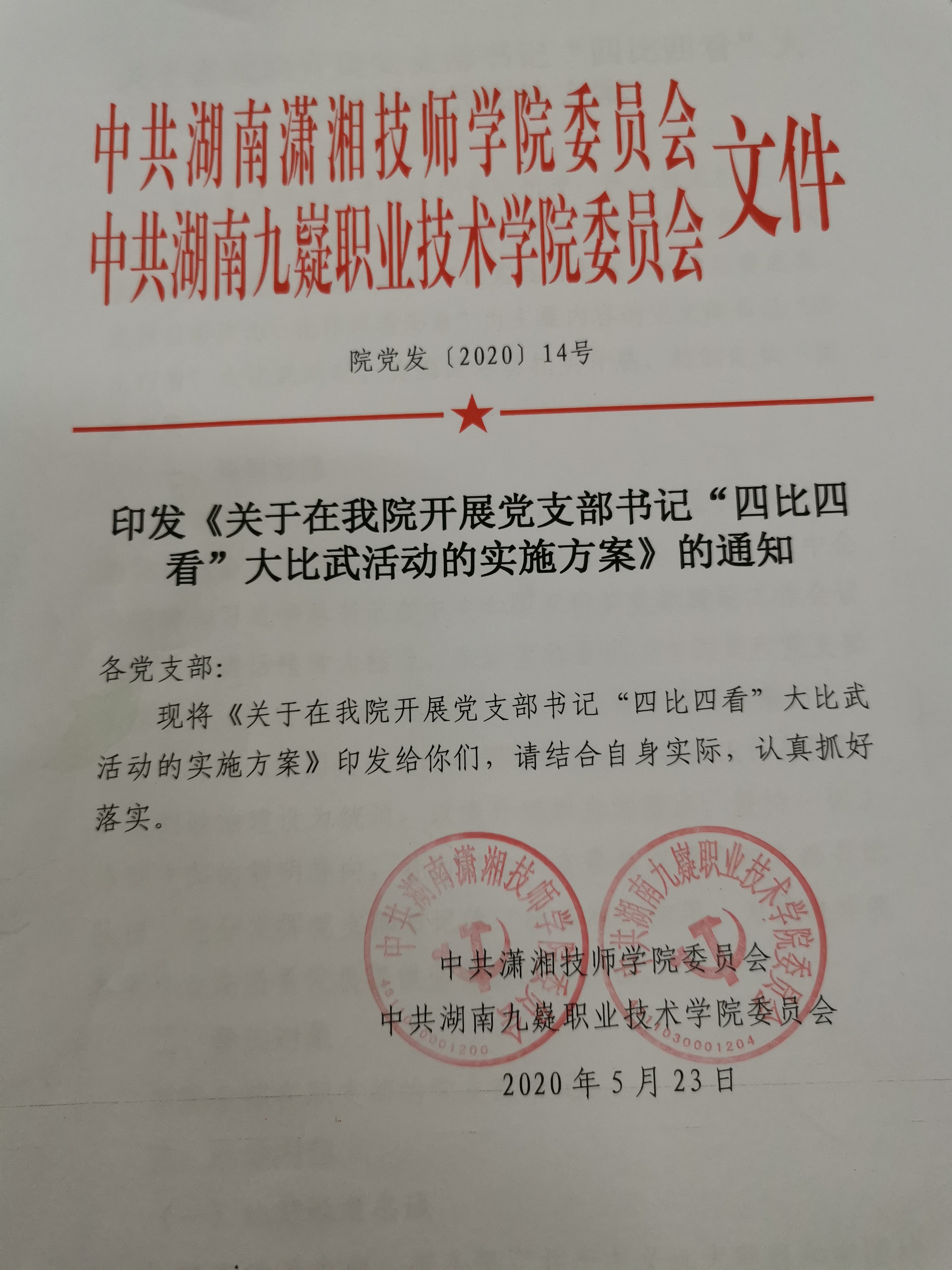 印发《关于在我院开展党支部书记“四比四看”大比武活动的实施方案》的通知