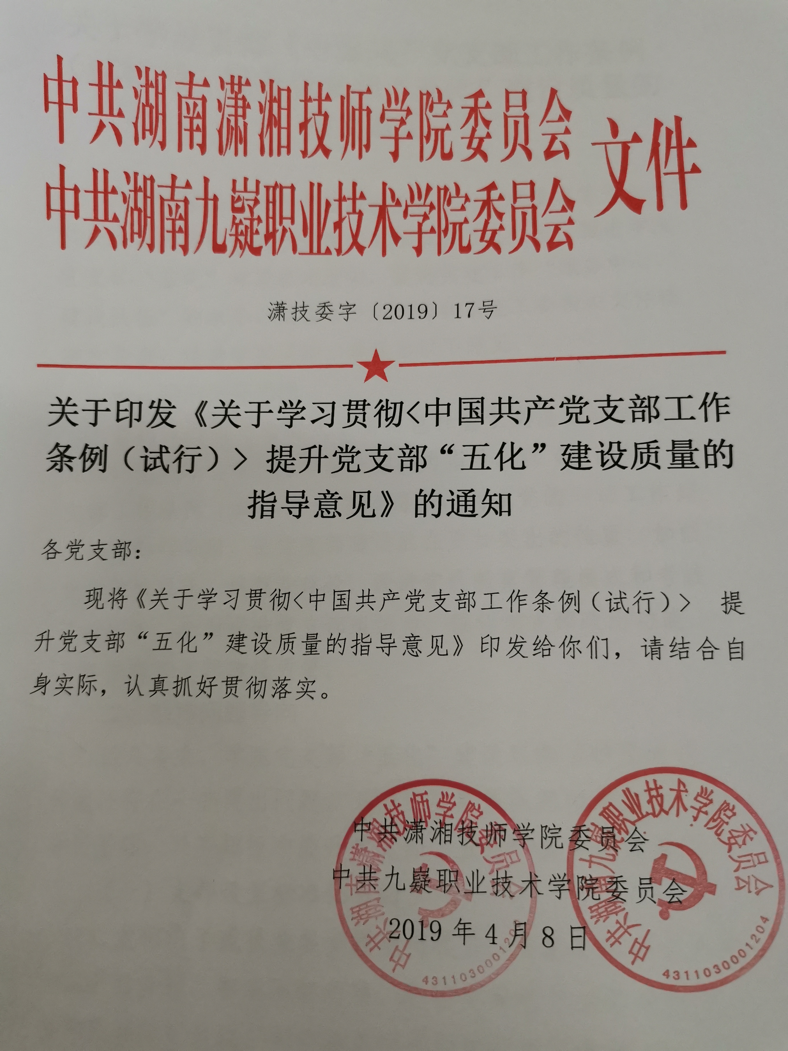 附件:关于转发《关于认真学习贯彻<中国共产党支部工作条例(试行)> 提升党支部“五化”建设质量的指导意见》的通知