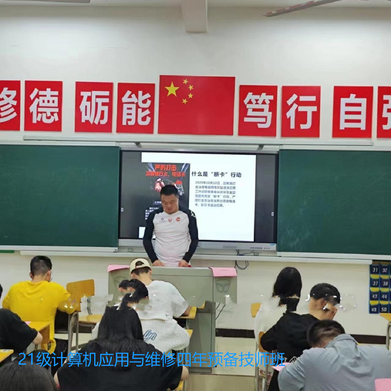 根据湘教通【2023】58号及永反诈打跨【2023】42号文件精神,根据学院要求,为全面提升我校学生识诈防诈“免疫力”,进一步加强我校学生防范电信诈骗意识和能力,遏制电信网络诈骗案件在我校发生,按照学院及系部要求,2023年4月12日我系组织所有班级开展“打击出租出售‘两卡’,反电诈宣传主题班会”并签订《不参与电信网络诈骗犯罪承诺书》、《法律责任告知书》。利用班级多媒体学习《打击出租出售‘两卡’,反电诈宣传主题PPT》,开展法律宣传教育,加强学生的防诈反诈意识,引导学生正确认识“两卡”管理保护性措施的重要意义,通过学习身边的案例和法律法规提高学生尊法、敬法、守法、用法意识,自觉抵制诱惑,做到警钟长鸣。