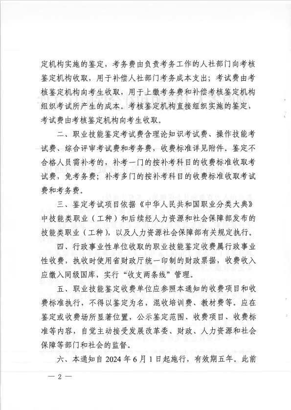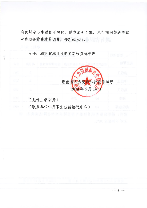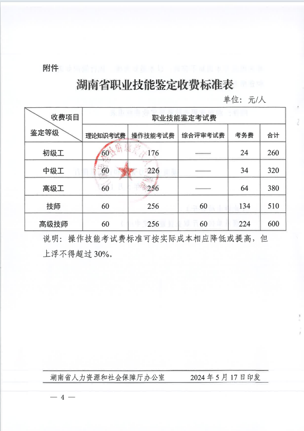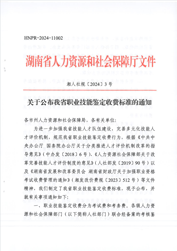 湘人社规【2024】3号文件 关于公布我省职业技能鉴定收费标准的通知