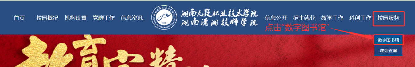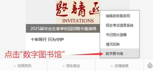 1、通过点击学校网站首页校园服务栏数字图书馆(https://mfindyzstsg.pub.chaoxing.com/#/Home),进入检索系统。