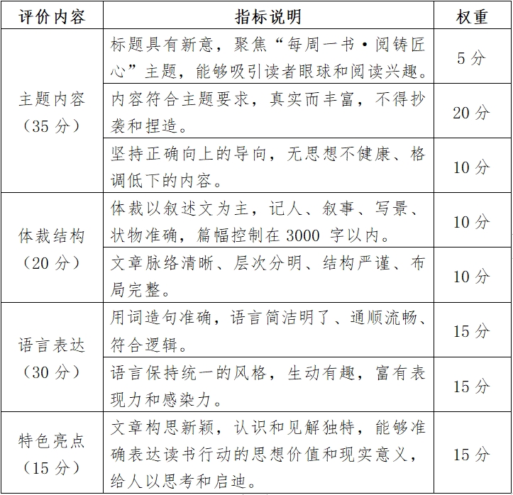 “每周一书·阅铸匠心”主题征文启事